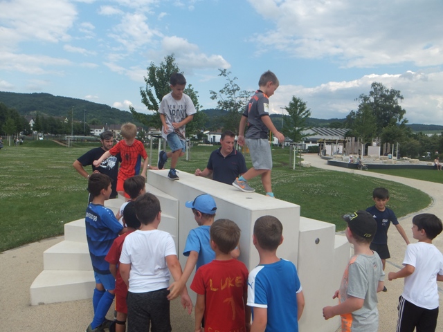 Eine Trainingseinheit der besonderen Art absolvierte unsere F-Jugend. Bei besten Wetter ging es mit den Kindern und Eltern auf die alla-Hopp-Anlage nach Hemsbach. Dort wurde von den Trainern ein Trainingsprogramm an den zahlreichen Geräten zusammengestellt. Im Vordergrund stand die Schulung der koordinativen Fähigkeiten. Auch das Training mit dem Ball kam nicht zu kurz. Alle Kinder waren mit Begeisterung und Spaß bei der Sache. Im Anschluss daran ging es zum gemütlichen Teil über. Bei einem gemeinsamen Picknick mit den Eltern und Kindern wurde der Tag abgeschlossen.