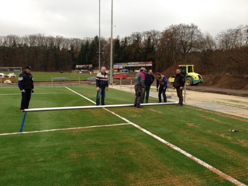 - Die Masten für die Ballfangzäune hinter den Toren wurden gestellt – hier muss aber noch weiter gearbeitet werden bzw. die Netze angebracht werden