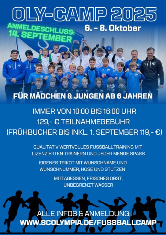 Weitere Informationen und den Link zur Anmeldung finden Sie ihr unter www.scolympia.de/fussballcamp.